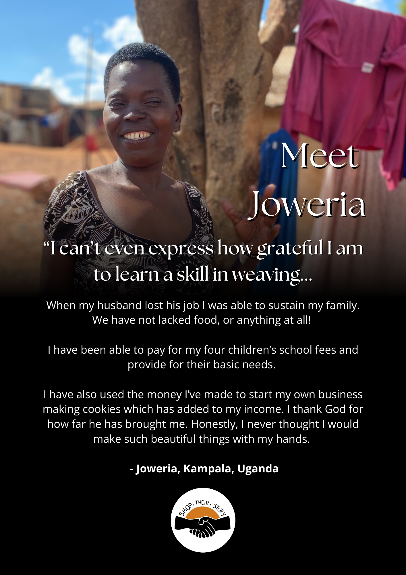 A group of women living in the slum communities of Kampala wove this by hand. For these ladies, a living wage for their work has empowered them to get their children into school to enjoy an education that many of their mamas missed. Being able to pay for their families living without relying on on handouts has been a boost to their confidence and we love watching them able to think ahead to the future.
