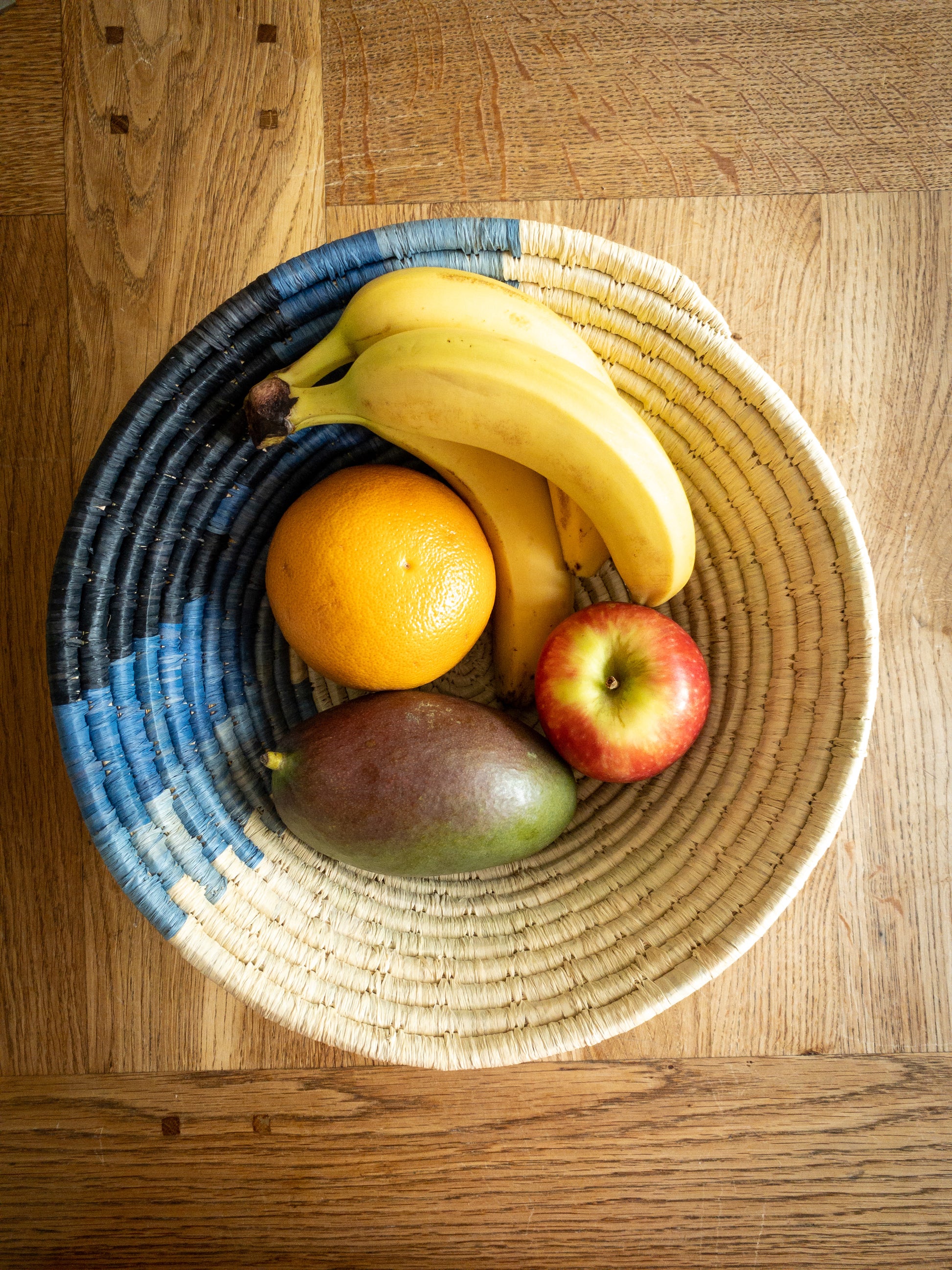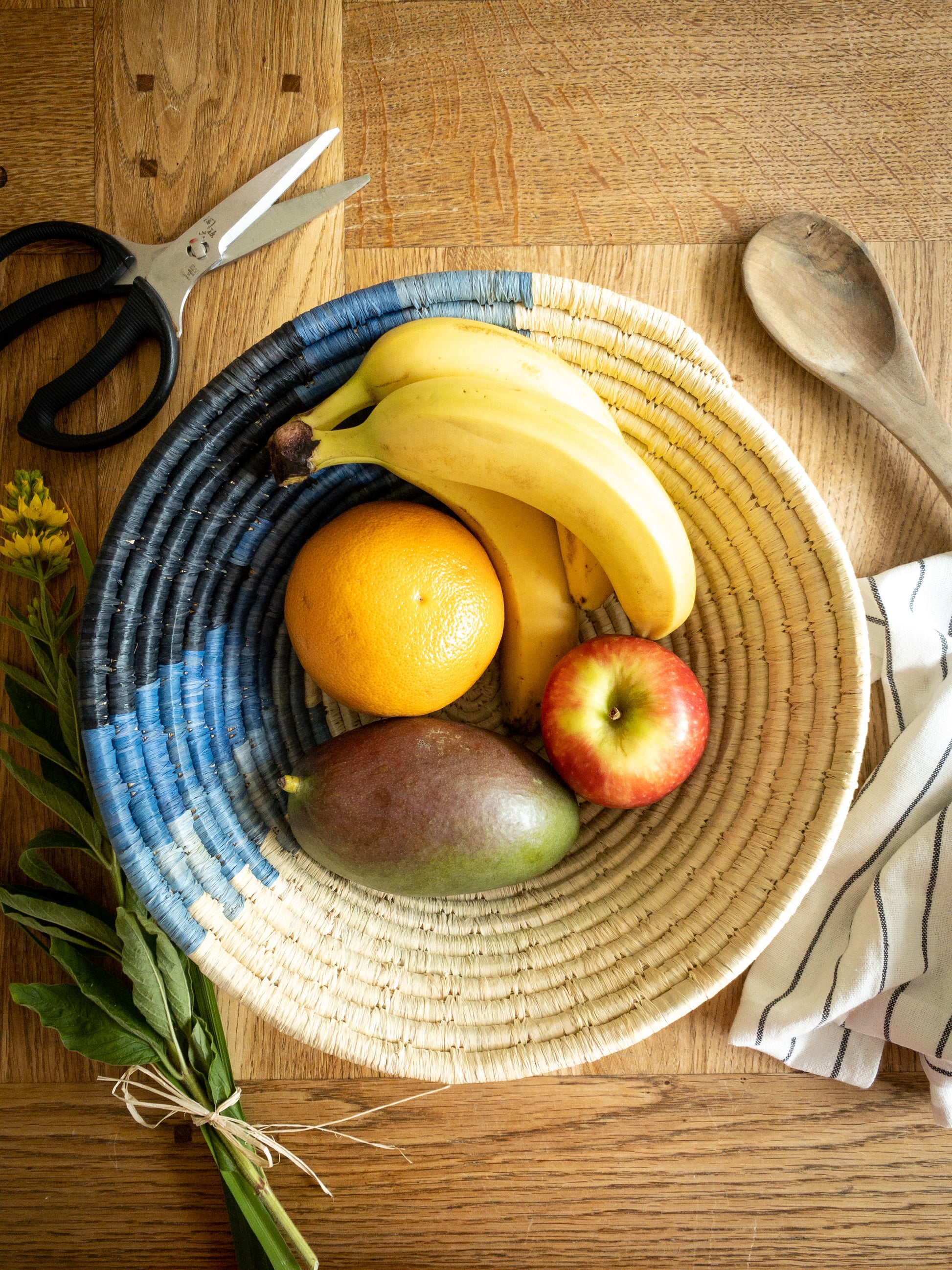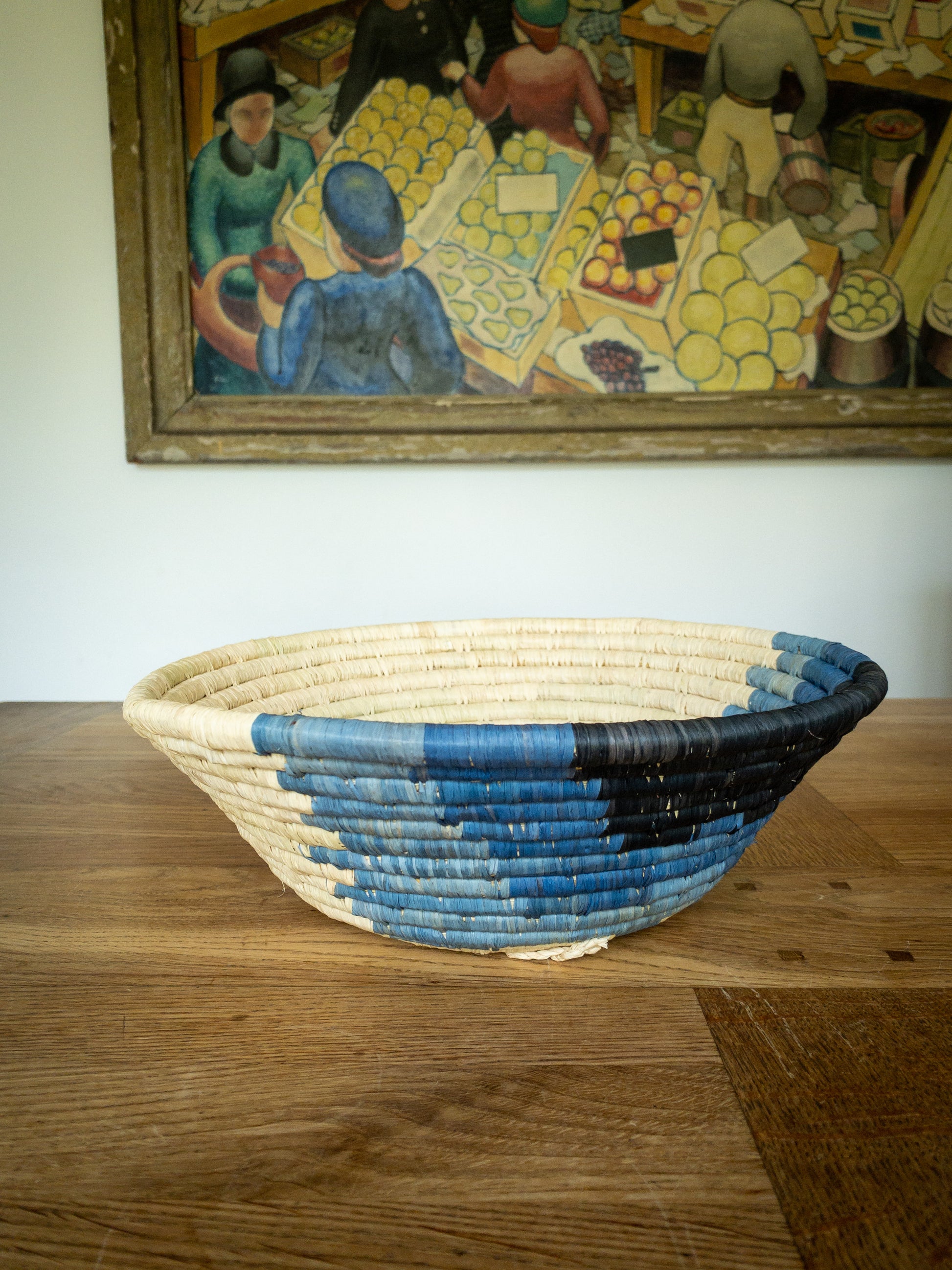 Bring a peaceful harmony to your home with this beautiful Fruit Bowl in Blue, crafted with care by skilled African artisans. Enjoy the natural beauty of the sustainable materials used, while showcasing your healthy fruit in a good size bowl.