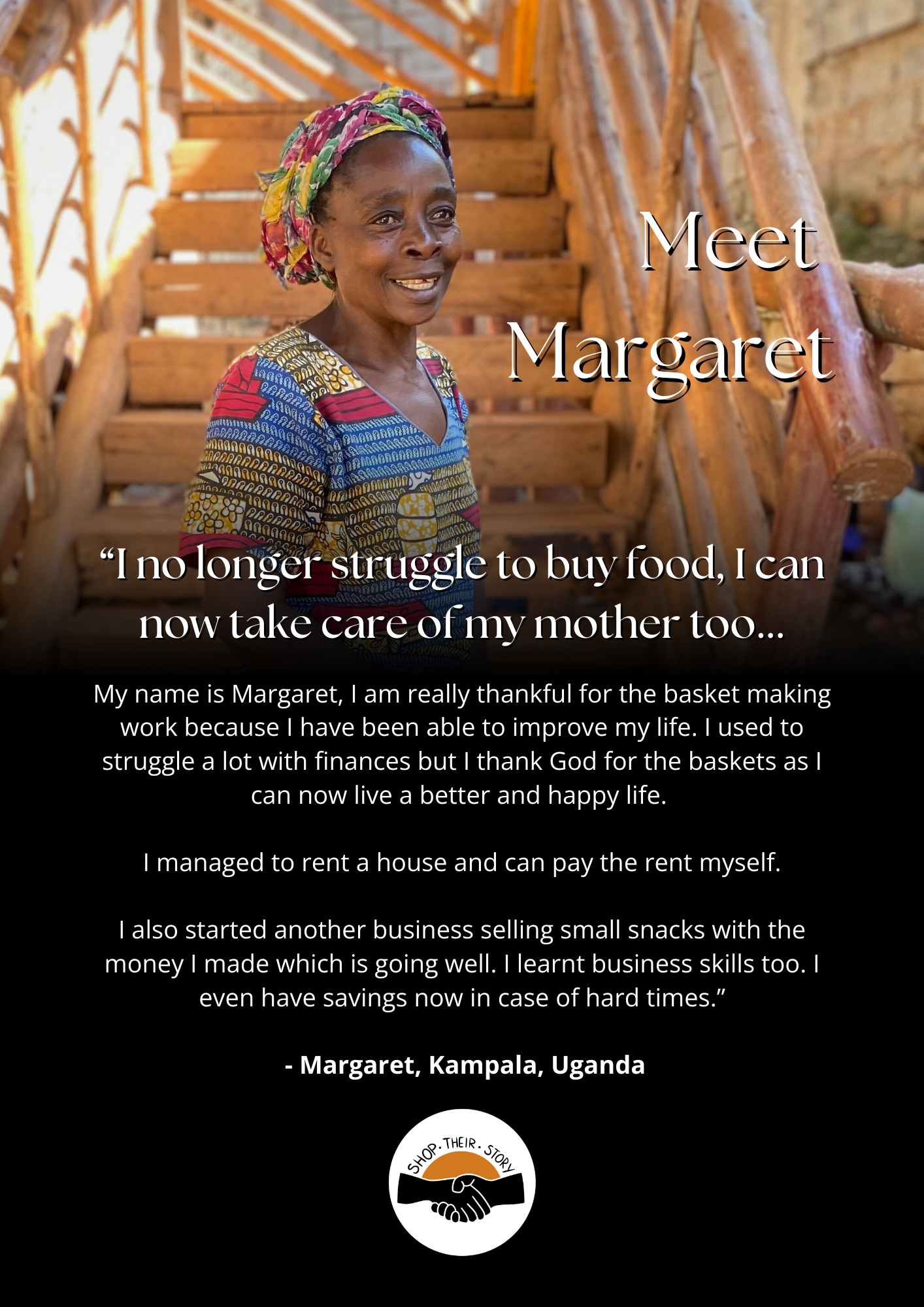 A group of women living in the slum communities of Kampala wove this by hand. For these ladies, a living wage for their work has empowered them to get their children into school to enjoy an education that many of their mamas missed. Being able to pay for their families living without relying on on handouts has been a boost to their confidence and we love watching them able to think ahead to the future.