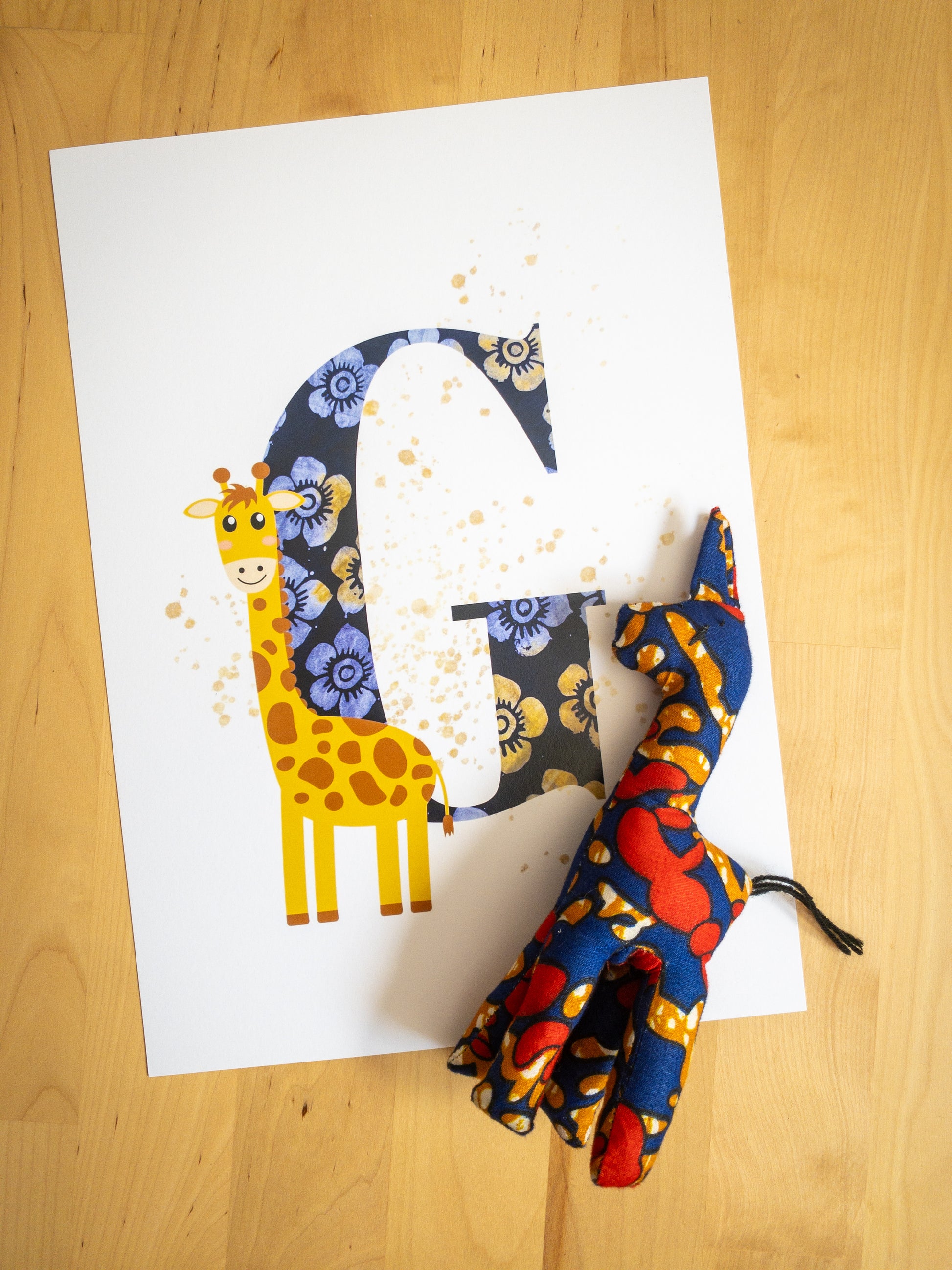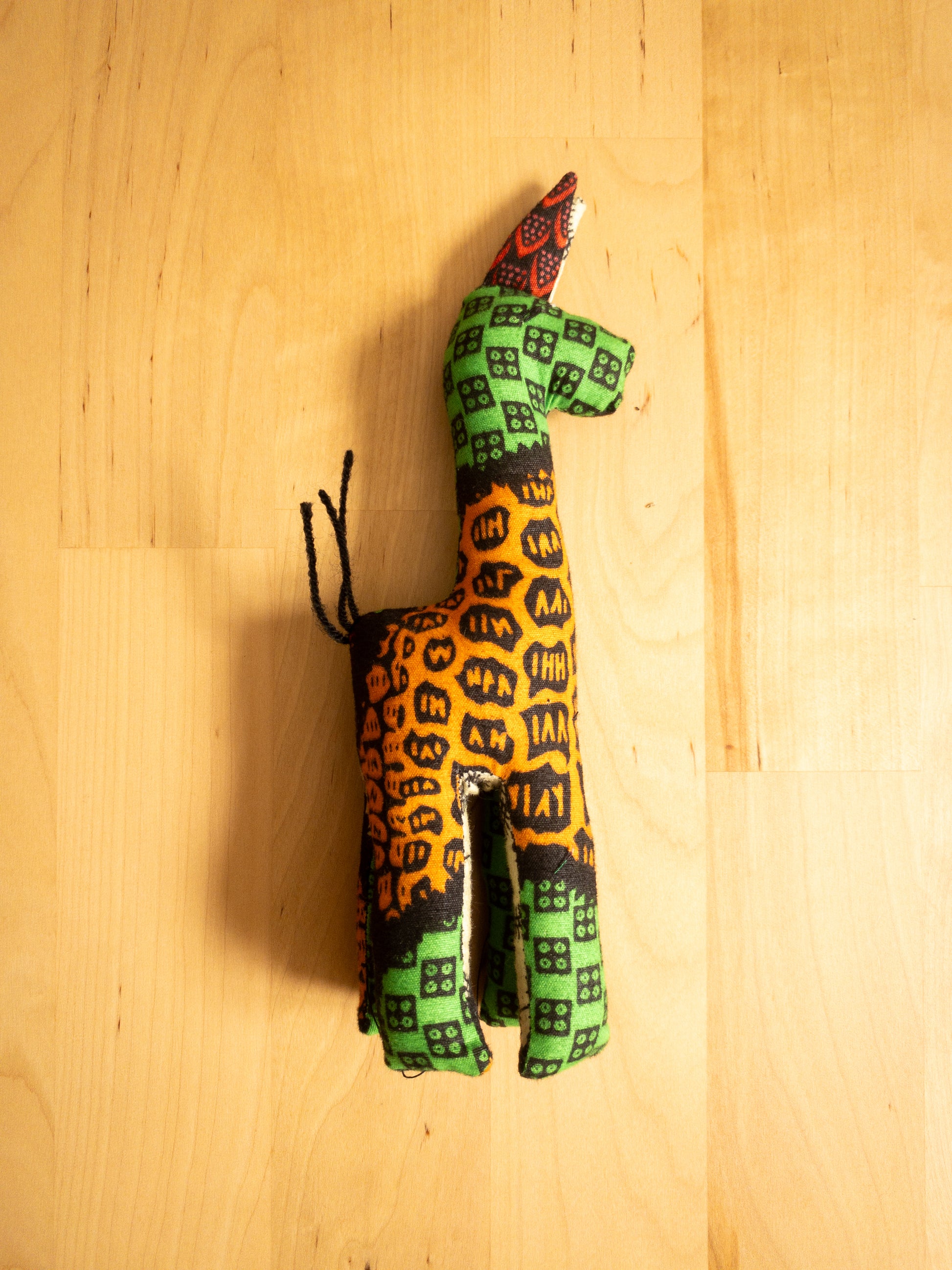 Discover the charm of these handmade Giraffes. There's only one of each animal available! Made from vibrant kitenge fabric in Uganda, every purchase helps empower women artisans. This soft, cuddly giraffe inspires creative play and celebrates expert handcrafted work.