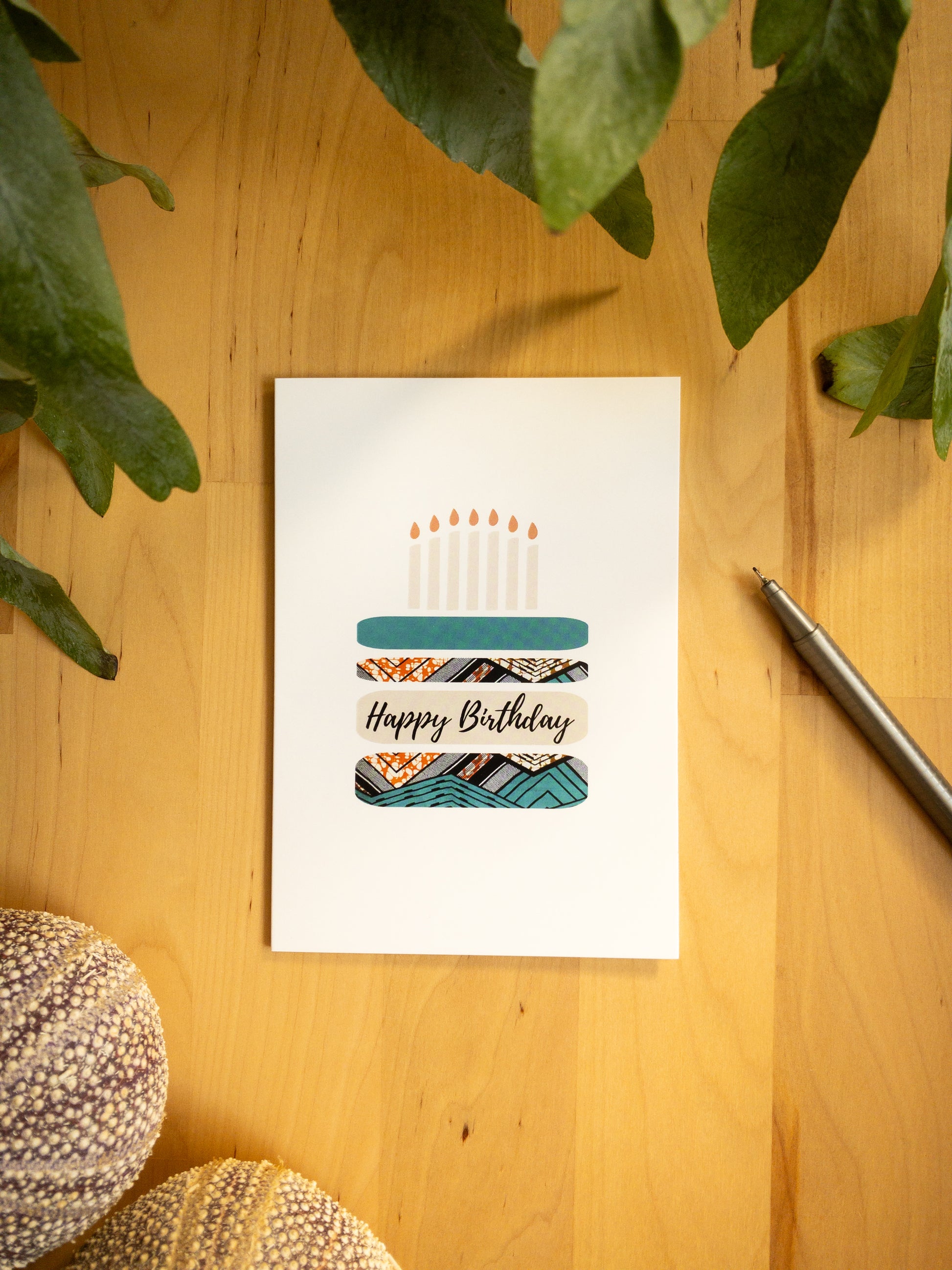 Featuring brightly coloured, digitalised kitenge fabric, these cards celebrate the rich beauty of traditional African textiles.