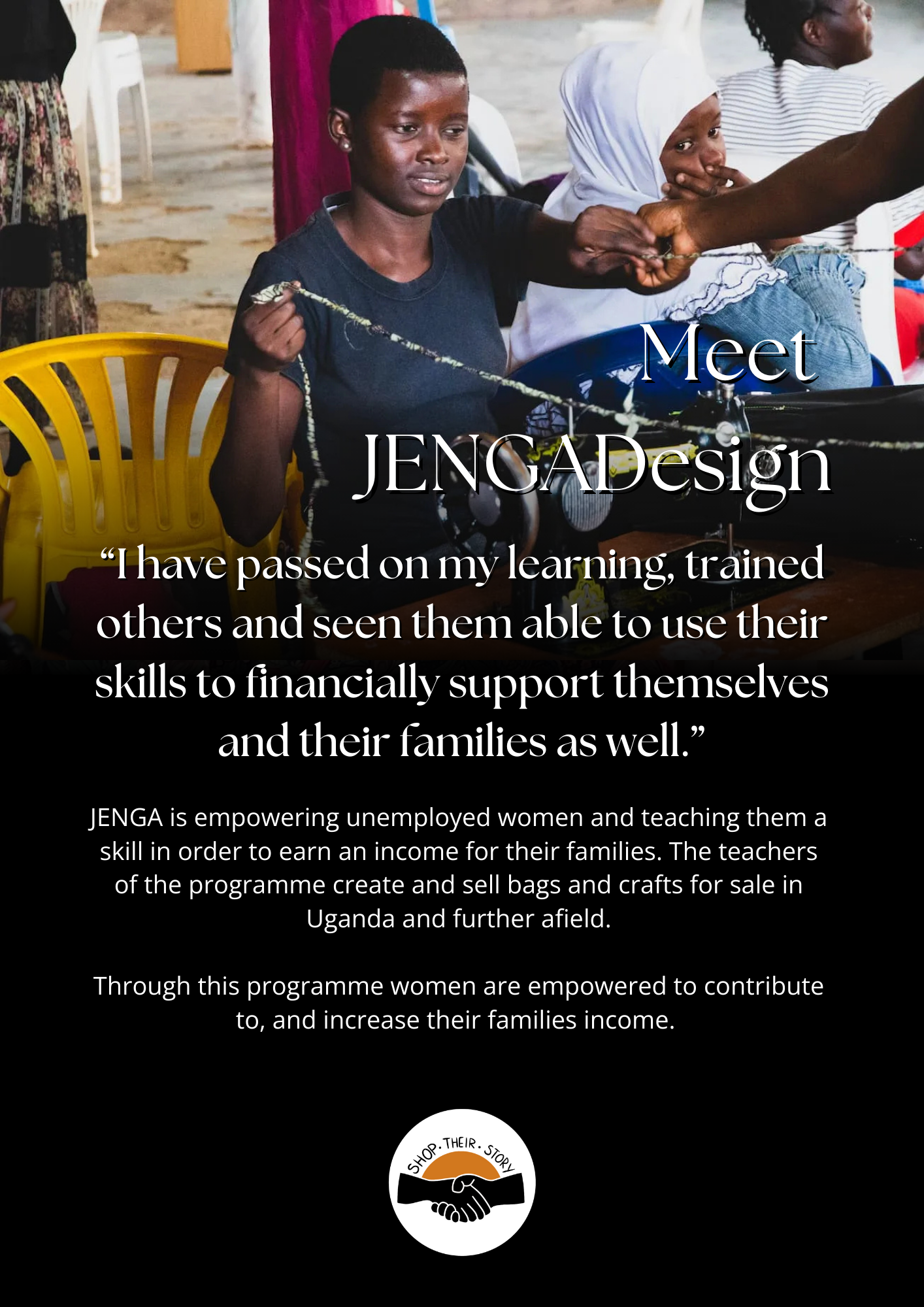 A group of tailors make these bags in Uganda. The income from these bags helps them to support their families. As well as making products to sell, the ladies also teach sewing and tailoring on the JENGA vocational skills programme. By buying this product you will be supporting these tailors to build a sustainable livelihood as well as contributing to the wider programmes that JENGA runs to equip Ugandans to meet the needs of themselves and their neighbours and to forever change their communities.