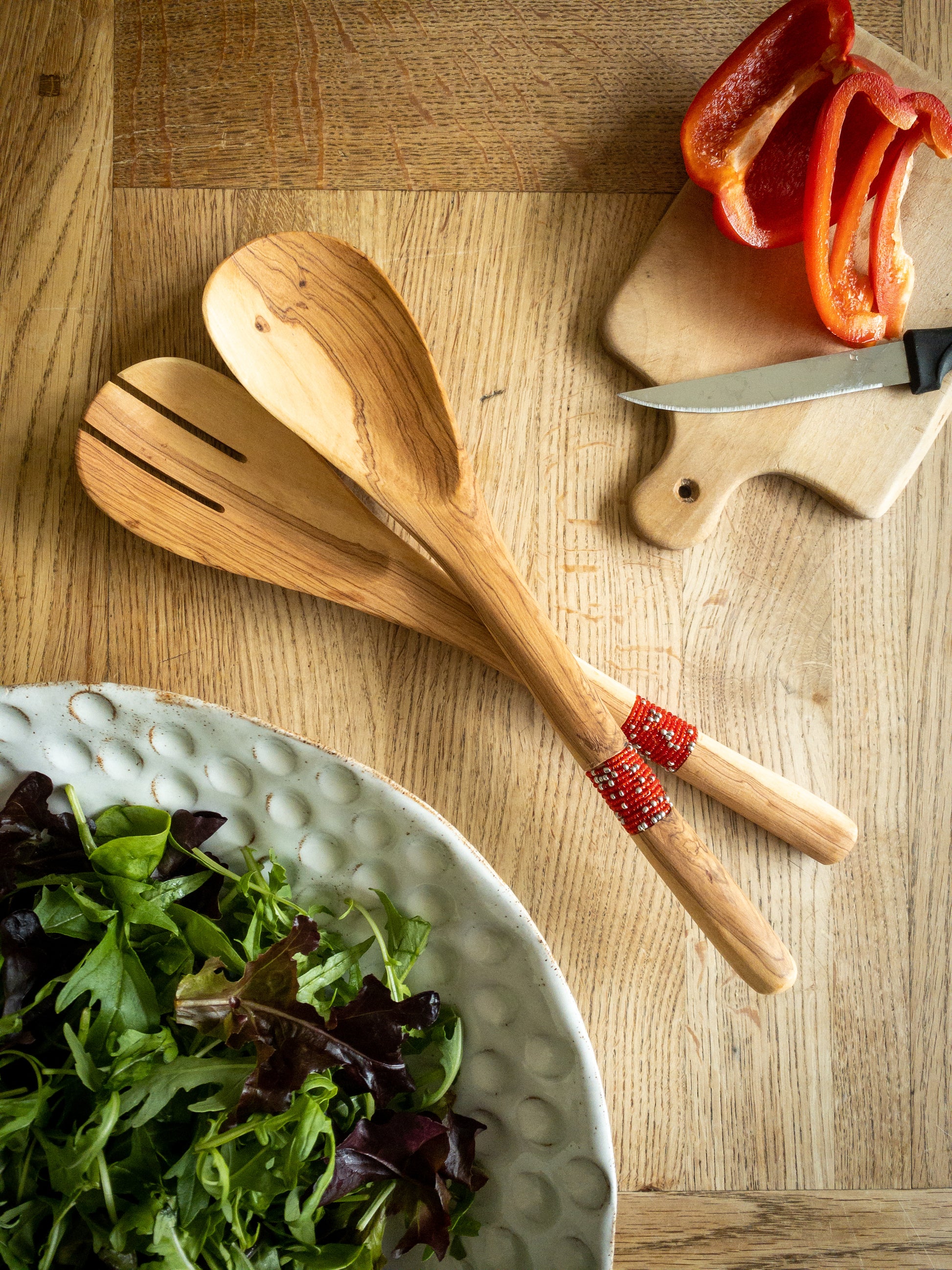 Serve up a little taste of sunny Africa with these hand-carved, jacaranda wood salad servers, finished with glass beads! Supporting African artisans with every purchase, you'll make your plate as wholesome as your meal - and smile!