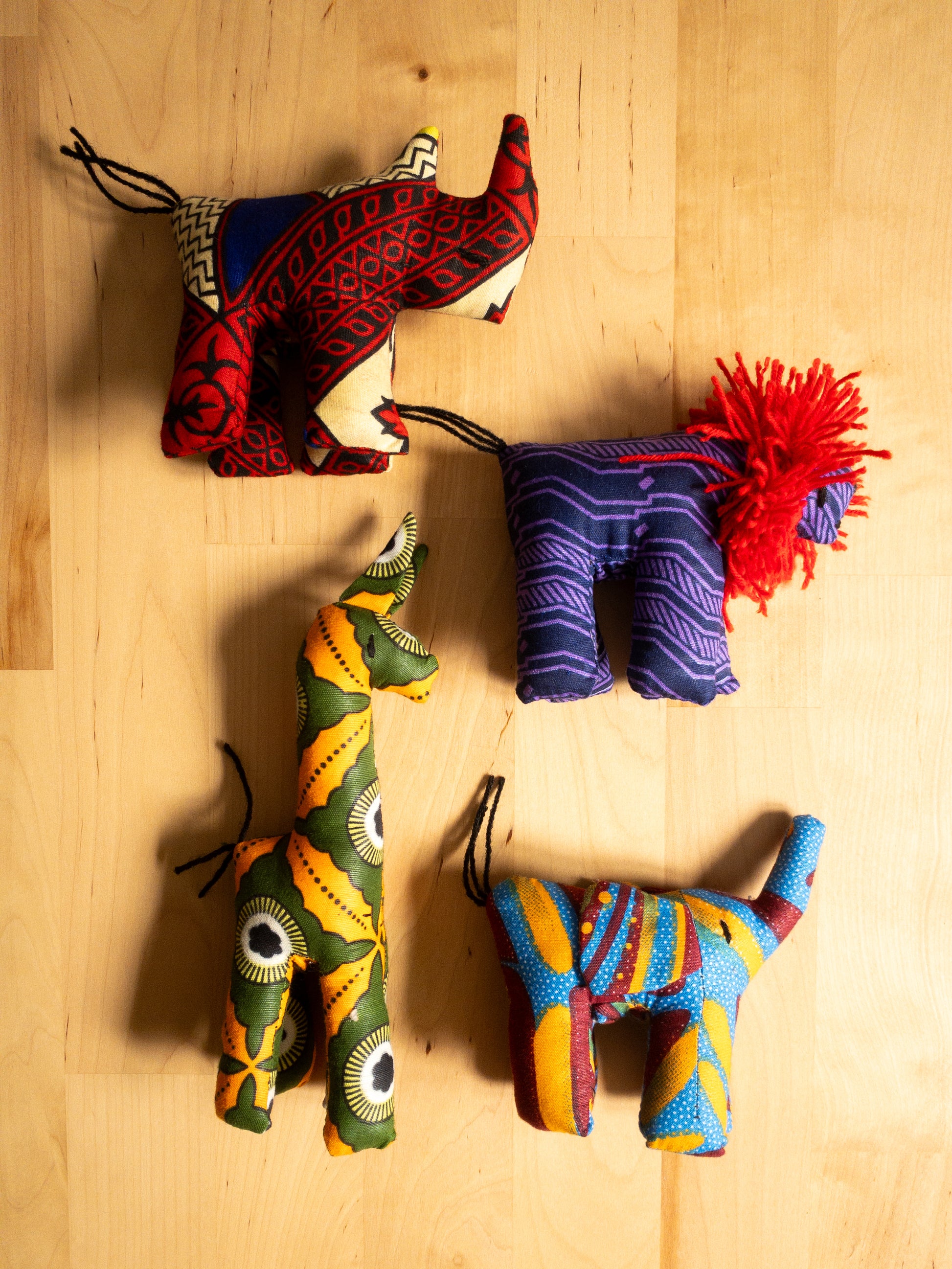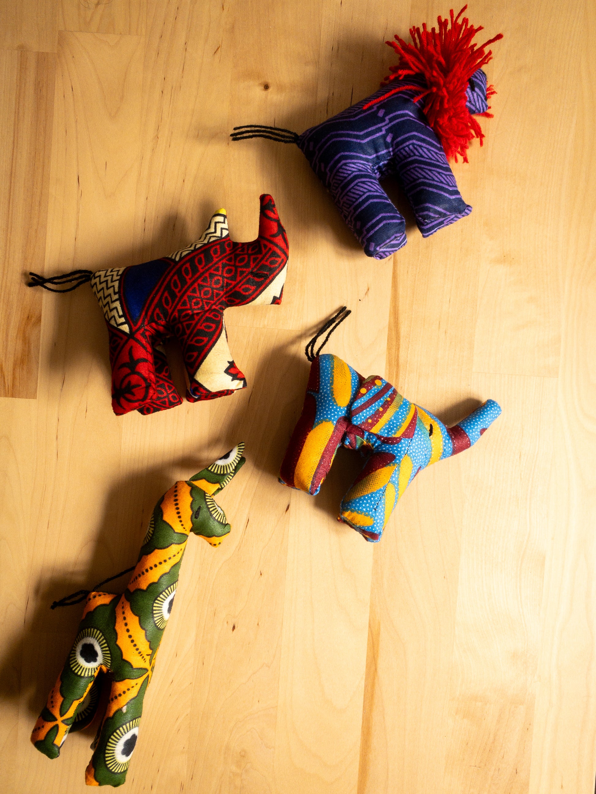 The designs of your animals will be a random selection of our kitenge print animals, the prints and colours may vary from the picture